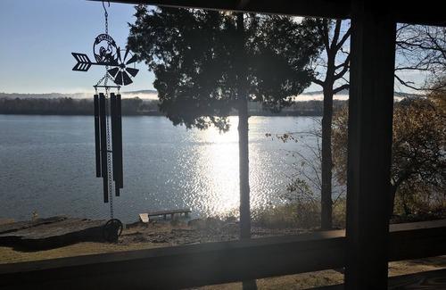 River side cabin located on the Beautiful Ohio River with several miles of spectacular open water views. Large covered porch with dog ramp into fenced in yard. Year round permanent dock. Sit by the fire & watch the moon shimmer across the surface of the water.