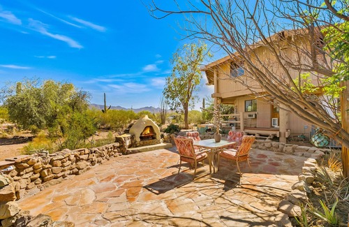 You won’t find cows or horses at OUR ranch, just abundant, native Sonoran Desert wildlife amid stunning mountain views. The out-of-the way, private setting down our short dirt driveway invites a leisurely attitude towards such modern worries as pants. An ideal choice for an adventurous family, reunions, retreats, or several couples who like privacy while sharing the overall space.
