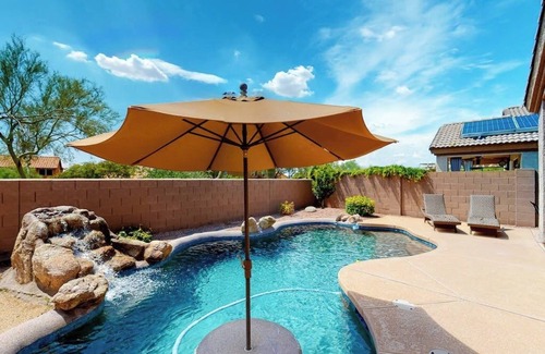 Desert Paradise in Cave Creek is located in Tatum Ranch. Desert Paradise in Cave Creek provides accommodation, featuring Bedding/Linens, Wellness Facilities, Fireplace/Heating, among other amenities. This House features Bedding/Linens, Wellness Facilities, Fireplace/Heating, to make your stay a comfortable one.