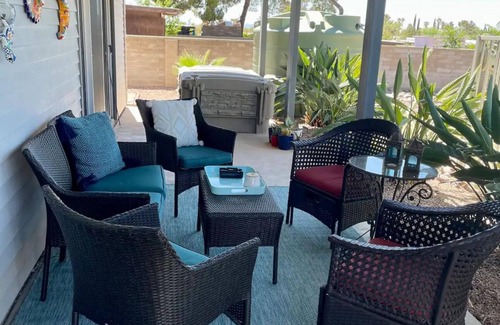 This 3-bedroom house in Tucson is perfect for your escape to relaxation , pet friendly near Saguaro National park east ,Tucson loop trail and mountain biking . With 3 queen beds, 2 bathrooms featuring a bathtub and shower, and amenities like WiFi and AC, guests will feel right at home. The cozy atmosphere and convenient features make this property a phenomenal choice for your next getaway. It's easy to see why you'll be able to unwind at our place. It has a beautiful covered outdoor living space and a outdoorbar with tv and an outdoor pizza oven , bbq grill . You will love the pristine pool and beautiful peaceful backyard surrounded by cactus .