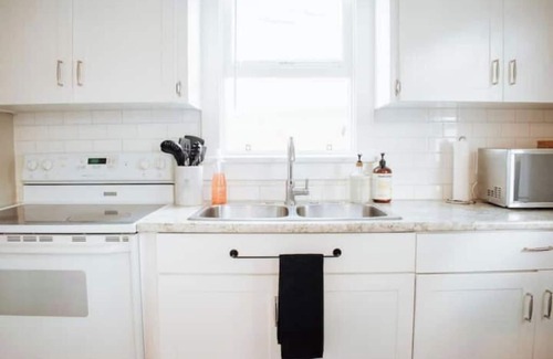 You'll also find a fully stocked kitchen with all the dishes and utensils you could need and a full bathroom and shower with bathtub - towels, soap, and shampoo/conditioner provided for your travelling convenience.