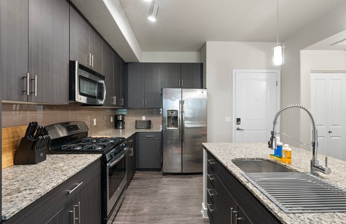 Guests have full access to a variety of upscale community amenities designed for both relaxation and recreation. Take a dip in the lounge pool or unwind in the hot tub, stay active at the state-of-the-art fitness center, or enjoy the second-story sundeck for soaking up Arizona’s sunshine. The property also features a modern sky lounge with TVs, community pool tables, a fully equipped business center, an outdoor kitchen and lounge area, and the on-site Press Coffee House for your daily coffee fix.