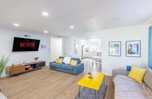 Come and enjoy a fully remodeled, spacious and fun filled pool home with indoor/outdoor living and a central location to everything LA has to offer! Home features all the modern amenities and touches you want when staying in a vacation rental! Spacious layout, comfortable seating, Heated Swimming Pool (addt'l $) Ping Pong + board games, BBQ, Coffee Corner, high end beds + bedding! At LAluxuryBnb we focus on creating memorable experiences for our guests!