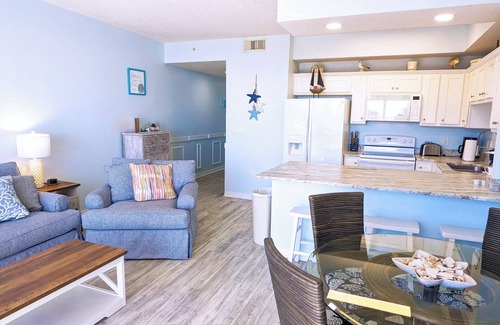 Unwind with the whole family at this fantastic vacation spot. Enjoy Beach Service from March through October. It's within walking distance to the pier, shops, and restaurants, and close to Gulfarium Marine Adventure Park. Relax on the beach or stroll across the pedestrian walkway to the lazy river on the bayside. The property features a workout facility, seven pools (two heated), a zero-entry pool, a large lazy river, hot tubs, and a beach bar within walking distance, bbq patio and much more.