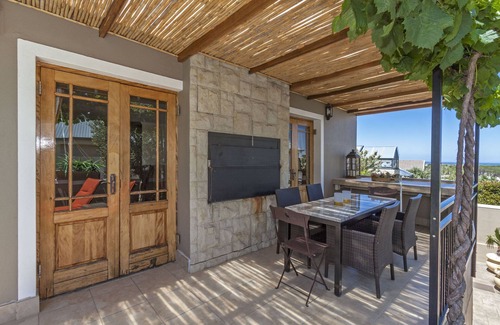 Fantastic private house with three bedrooms and two bathrooms en suite. The perfectly appointed African style home is located in the secluded Fernwood Estate, with sweeping views of Gordon's Bay and False Bay.