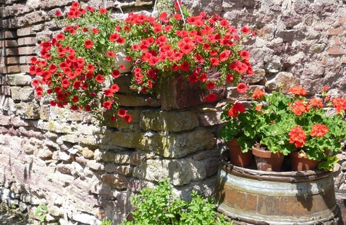 Outside, the private and exclusive terraces featuring lovely hillside views offering a choice of sunshine, or dabbled shade from a giant walnut tree. There is usually an abundance of traditional flower plants on display while the range of lavender and herb plants(chives, tarrragon, rosemary, sage, thyme, mint etc) will enhance any terrace meal.