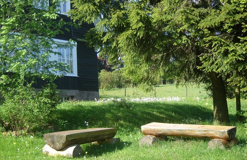 The large terrace is equipped with garden furniture, parasol and a Weber charcoal grill is available. The property is not completely fenced and the huge meadow offers enough space for fun and games. In winter, the illuminated trail runs around 100 meters in front of the house. Access to the Hohe Geiß alpine ski center is also nearby.