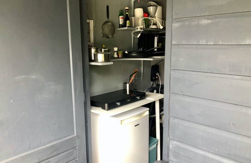 This lovely sun-drenched, luxurious cottage is located on the edge of the vast forests and farmlands of the Utrecht Landscape. It is a wonderful place to relax, walk or cycle. The cottage is furnished as a studio: the living room, kitchen and bedroom are in one space. The small but charming kitchen block is fully equipped. (magnatron, hob, Nespresso coffee machine). You can cook on a two-burner stove in the room where the refrigerator and oven are located. The bathroom has a spacious shower, a sink and a toilet. The living room has a lovely double bed, two easy chairs and a dining table with two chairs. The cottage has its own central heating system and can be heated in no time. Next to the house is a swimming pool, which you can use during the warm summer months. The table with umbrella and deck chairs by the pool belong to the guest house. At the front of the house is a shady seating area. For lovers there is a barbecue and an outdoor fireplace. In addition to Ziggo TV, there is Netflix and HBO.