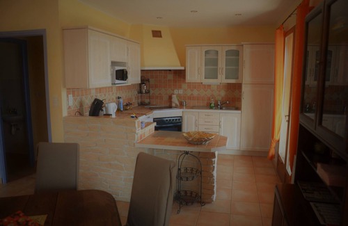 A detached holiday home is rented in a quiet location with a magnificent view towards the Verdon gorge. The village is on the Valensole plateau. The building has 2 separate bedrooms, a lovingly equipped Provencal kitchen, a living room with satellite TV, and a balcony and garden. The surrounding area is spectacular and offers a variety of leisure activities such as hiking, climbing, mountain biking, motorcycling, canyoning, kayaking, paragliding, ballooning, gliding and much more.