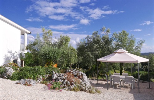 This detached villa with private swimming pool is near to excellent local facilities including Aqua Parks & many superb river beaches. It stands in a quarter acre garden of immense character with huge limestone rocks + ancient olive, fig and bay trees providing shade for long lazy days with the fridge close to hand! The 6 metre ‘Wall of Glass’ in the lounge opens onto a full length balcony with breathtaking views over the garden to the hills beyond. The villa occupies a private and peaceful location on the edge of the village of Outeiro yet is only a 5 minute drive to shops, bars, restaurants & a 40 minute journey west through a beautiful landscape of vines, orchards & olive groves to the stunning resorts of The Silver Coast. You can also venture into hidden valleys and bathe at one of the many river beaches for which this area is famous, or away into the mountains where stunning views seem endless, ancient villages cling to steep hillsides and towns nestle beneath medieval castles.