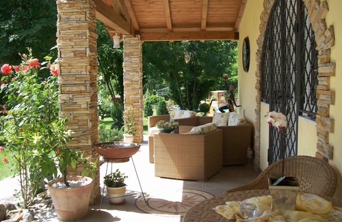 Bungalow 12o m2 area. Ideal for families with children and pets. A parkland 5ooo m2 surface, also for games and sports, golf tee. After the pool visit many opportunities for sunbathing and panoramic view of the wooded mountain landscape. Adventure trails to the river and the mountains, a paradise for big-city children.