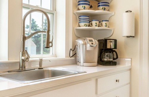 Outside, there is a large, shared lawn that expands down to the water's edge with Adirondack chairs and a fire pit; perfect for relaxing and reflecting on the excitement of the day while enjoying the sights and sounds of the ocean. Enjoy a glass of wine after a day of exploring the local beach, visiting