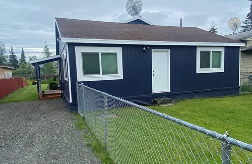 Recently remodeled single family home ,two bedrooms, two baths. Sleeps 4 , I king size bed in master ,1 queen bed in 2 nd bedroom with twin pull out underneath , couch in living room pulls out . Blackout shades throughout house. Cozy, farmhouse style, fully equipped kitchen. Modern baths, master includes custom shower with dual heads and custom tile work , while the guest bath also features custom tile work, along with an extra deep tub. Incredible kitchen for hosting gatherings. Nice size, fenced in yard. Safe location, near airport and downtown. Elementary school less than 2 min walking distance. Close to shopping, restaurants, and local attractions; trail system. 5 min walk to Fish creek trail. Less than 3 miles to Tony Knowles Coastal Trail. Several coffee shops within walking distance. High speed Internet included. Washer and dryer on site. Chest freezer available. Ample Parking, up to 5 vehicles.