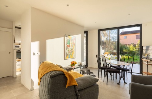Apartment with a lot of character, completely renovated by a prestigious architect and fully equipped. Located just steps away from the metro and Parilly Park, its location will allow you to reach the centre of Lyon in 15 minutes by metro line D. The apartment has a large, bright living room with access to a beautiful garden. It is located on the ground floor of a beautifully renovated house in a quiet area on the edge of Parilly Park, with a private garage with a gate.