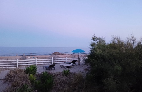 Comfortable and contemporary villa. The villa on the beach accommodates 10 people: 4 bedrooms, 2 shower rooms, 2 WCs, 2 terraces, a private bech, kitchen open to the living room. The view of the Mediterranean Sea is magnificent thanks to the large bays in the living room and the dining room. A large sandy and shaded garden of 1000 m² surrounds the villa. A gate gives direct access to the long sandy beach. A swim then a small outdoor shower to get desalinated, a nap in a deckchair under the bohemian olive trees, a grill to the sound of the waves? The visits are not to be outdone: Montpellier the Medieval, Sète the singular island. Welcome to La Villa sur la Plage. com in Frontignan.