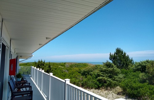 COZY CONDO PERFECT FOR ONE OR TWO ONLY: Cute second floor (top floor), one bedroom / one bath unit. Just steps to the beach or simply relax with an ocean view over the dunes from inside the unit. Unit includes living/eating area with couch, chair and dining table, galley kitchen, smaller bath with shower and large bedroom with queen bed. TVs in both the living/eating area and bedroom include Sling TV and WIFI Internet connectivity. On site coin-op laundry. Outside shower and two community decks. Stay includes use of two adult beach tags. (Traveler will be responsible to reimburse Owner any international credit card fees)