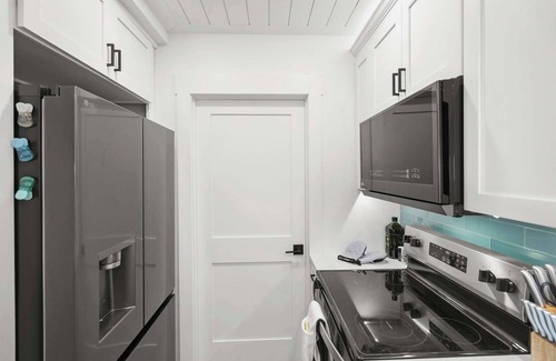 OPEN LIVING: The kitchen is adjacent to the living and dining area so everyone can be together whether lounging, dining or cooking! We outfit the kitchen with enough paper products, pods, trash bags and soaps for the length of your stay. Linens and towels are included.