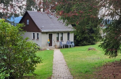 Our very well equipped holiday home offers 75 sqm living space in a quiet location directly at the edge of the forest in one of the most beautiful low mountain ranges (Erzgebirge/Vogtland) in Germany at approx. 700 m above sea level. On the 600 sqm large property you will find good conditions for recreation for adults or as a playground for children.