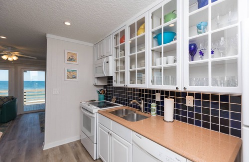 Step right out your back door onto your private deck overlooking the ocean. Nothing between you and the water except sand! This 2 bedroom, one bath attached home (duplex) has been completely remodeled and ready for some Florida memories. Large private deck includes lounge chairs as well as dining. This home is fully furnished including towels, linens and stocked kitchen with everything you need. Coffee pots and a Keurig. Cable, wifi, electric, security all included. Flat screen tv's. Just bring your suitcase. TPC guest welcome! Golf amenities nearby. This home is for two guest only. Visitors are not allowed.