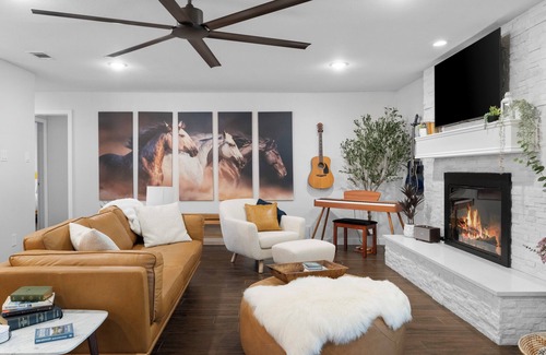 Designer bedrooms with custom wall art with multiple King master bedrooms. Completely remodeled interior and this house is in "In The Country" while only minute from a major highway and less than twenty miles from the iconic "Fort Worth Stockyards". At our house you will be welcomed by the beautiful white horse rail fence and a large electric drive in gate. This feels like an elegant ranch getaway.