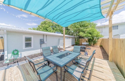 A Stone's Throw is the perfect place to get away and relax in a fully renovated, contemporary beach cottage, within a five minute walk to the white sandy beaches and gulf breezes. Our beach cottage home sleeps 6, with a King size bed in the private master bedroom suite, a Queen bed in the guestroom, and an ideal twin bunk room. This property includes Wi-Fi and cable, washer and dryer, cooking necessities and starter toiletries. Outdoor decking allows for a view of fireworks and nighttime moments listening to the ocean waves.