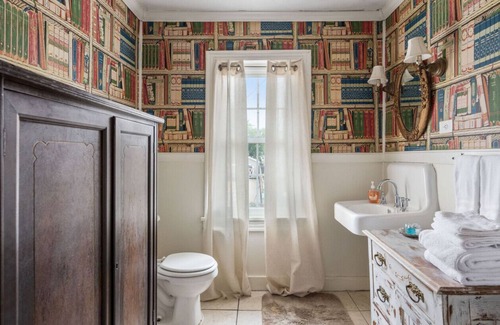 Claw Tub with Shower: Unwind in a clawfoot tub, which also features a shower for added convenience.