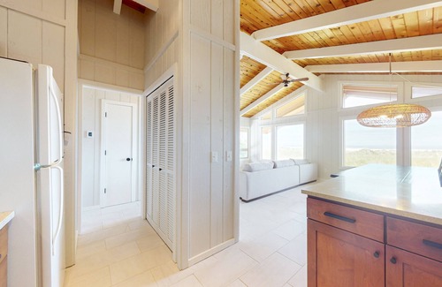 With a king bed, twin bed, and additional amenities such as a washer/dryer, board games, TV, hair dryer, and iron, this home has everything you need for a comfortable and enjoyable stay. Stay connected with the provided internet and wireless router, or simply unwind and enjoy the incredible ocean views.
