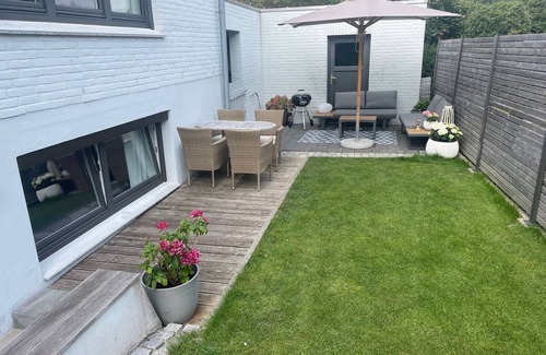 A few steps lead to a separate entrance to the apartment in the basement of a detached house just 50 meters from the sandy beach.
