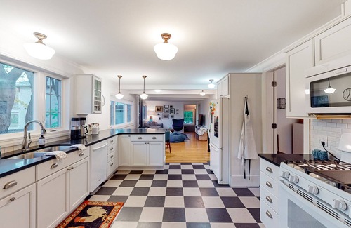 Originally built in 1875 and renovated several times over the years, the property is full of the quirks and charms that make a house a home. Enjoy rooms that are sunny, peaceful, and spacious enough for spreading out. Cook with ease in the well-equipped kitchen, gather for movies (via Amazon Fire TV or DVD) in the attached family room, or set up a board game by one of the two fireplaces.