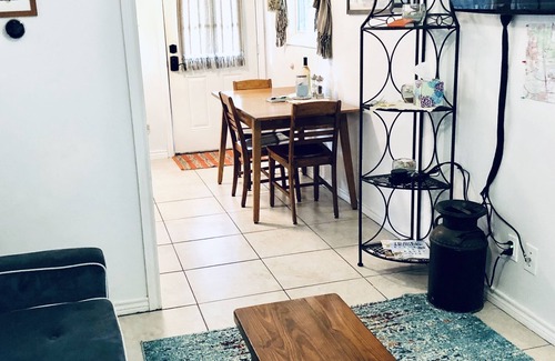The guest house is secluded and gated from the main house and guests will have the guest house to themselves. The guest house has a couch that makes out to a full bed. Air mattress available for guest bookings over 3 people. There is a washer/dryer combo for small loads for our longer staying guest.