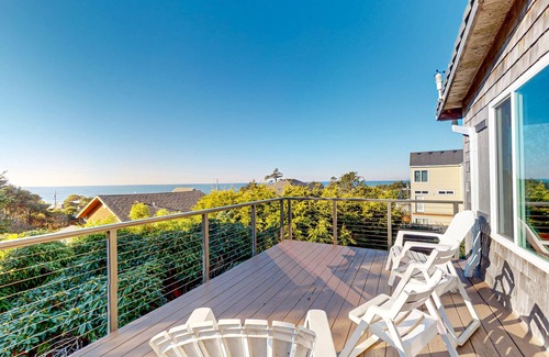 Get away from it all and soak up the salty air and ocean views from your very own Oregon retreat! Featuring high ceilings, dark wood accents, and a spacious deck, Sea Wonder offers that classic coastal feel that will welcome each guest with open arms. After a day at the beach, the fully equipped kitchen has everything needed to prepare tasty meals including a full fridge, stove, plenty of counter space, and all of the utensils of home. Dine alfresco on the outdoor dining table as you sip a glass of wine and reminisce with loved ones. When you really want to settle down for the night, slip into your bathing suit and soak in the private hot tub as the stars come out. Don't worry about being disconnected on this trip, as you will also have access to free high-speed WiFi perfect for streaming shows, working from home, or catching up on school.