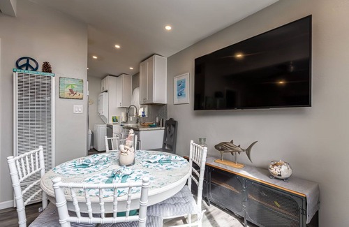 Welcome to our beautifully appointed beach cottage! We have tastefully remodeled and refurbished the entire cottage last year so everything is new and clean. The cottage boasts a one bedroom, one bathroom layout and is comfortability sized for up to four guests. The kitchen offers all new appliances and is stocked with enough cooking utensils to please any chief. The 100Mb WiFi should satisfy any streaming, gaming or business needs and the wall mounted 65" Sony TV can be viewed from the private outside patio when BBQing or relaxing. Air conditioning (split unit heat pump) provides comfort in the summer and the living room sofa folds out to a queen bed with bedding located in the closet.