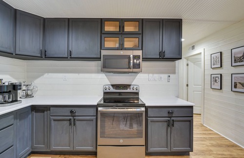 Nestled in the Dallas-Fort Worth suburbs awaits this modern-country vacation rental! This bright 2-bedroom, 1-bathroom house serves as the ideal home base, featuring white shiplap walls, a fully equipped kitchen, Smart TVs, and more. Take the dogs to Mockingbird Nature Park, go swimming or fishing in Joe Pool Lake, and explore big attractions like the Dallas Zoo. Retreat to the private yard for a relaxing evening under the stars, followed by a movie beside the wood-burning stove.
