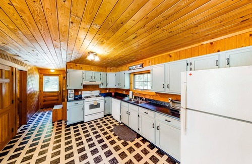 Tucked away in a beautiful woodland against the gorgeous waters of Lake Eden, this classic, dog-friendly cabin is quiet, secluded, and just what you've been waiting to find for your next Vermont vacation! Inside, a lustrous, all-wood interior is complemented by high, vaulted ceilings, lots of natural light, and an open concept you'll simply fall in love with. Summer guests will love kicking up a fire in the fire pit to toast marshmallows and chat under a canopy of soft starlight. The wrap-around deck overlooking the lake is the perfect place to enjoy your first cup of morning coffee while the world wakes up around you. Head down the steps to spend time on the dock where you'll find a kayak for lake enjoyment, seating, and plenty of space for swimming and fishing.