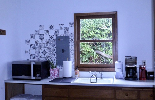 The single-level house has three main floor bedrooms and a loft, the first bedroom offering a queen-sized bed, private patio with ocean views, and an adjoining bathroom. A cozy second bedroom has two twin beds and is garden-facing. The third bedroom doubles up as a guest room with a queen bed and it’s own separate entry. Up a few stairs is the third queen bed in the cheerful loft with bright ocean views. The loft shares the bathroom with the twin and guest rooms, and is large enough for an additional office space or game room.
