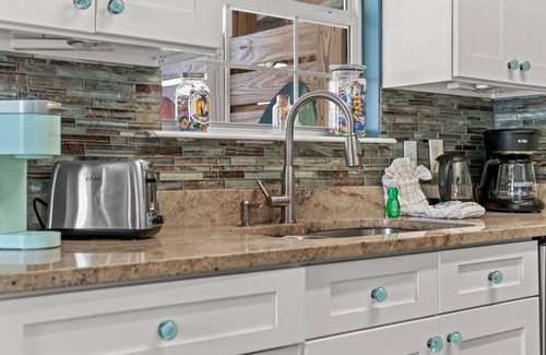 Entertain and chill outdoors under the covered outdoor brick patio, tiki bar, gas grill, picnic area and outdoor beach shower with 2 wifi streaming smart tvs. Back yard is fully-fenced with a sitting area, dog station and hammock vibe station. Please make sure to mention if you are bringing your pet with you.