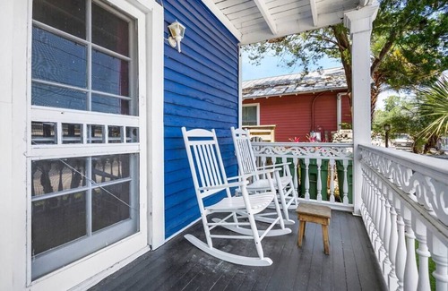 Come stay in this completely renovated, beautiful second floor, pet-friendly one bedroom apartment with a large fully-equipped eat-in kitchen. A spacious balcony with rocking chairs. Shared use of the fabulous back yard with picnic tables, BBQ grills, and bicycles! One parking space guaranteed. Best part: The location! About a five-minute walk to historic downtown and Flagler. Super comfy queen size 4-post bed. Pet fee is $40 per dog per stay (max of 2 dogs).