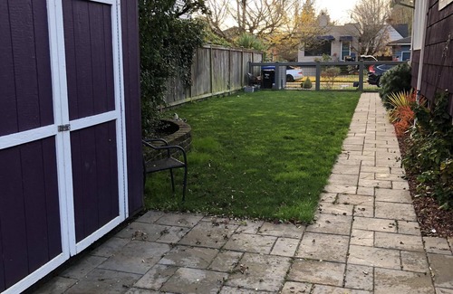 Private entrance 1025 sq ft space in bottom part of owners home. Full size bed, bathroom and sleeper bed in living room for two people. Fully furnished with all amenities. Walking distance to all you need, restaurants, bars, grocery stores and coffee shops. Close to the beach 1.7 miles. Great walkable neighborhood. Six miles to downtown. Large fenced yard for the right pup.