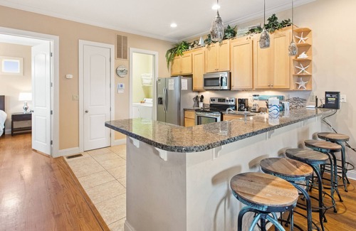 Enjoy a family home, right by the beach! This sprawling dog-friendly townhouse is set up with everything you need to enjoy a fabulous vacation, including an impressive full kitchen that merges with the wide common room space. Ceiling fans in every bedroom and central air conditioning will help keep everyone comfortable. Walk to the beach whenever, or head over to the shared community pool! When you come back, just set the swimsuits in the private washer/dryer and kick back.