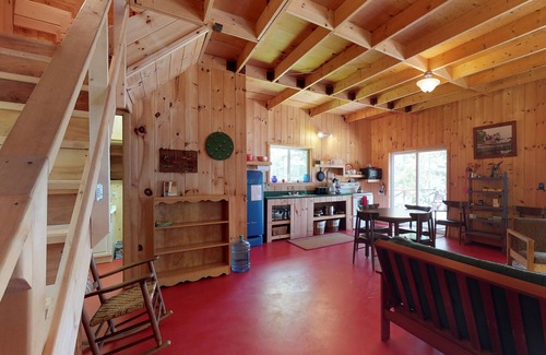 Get up early and cast a line off the dock or enjoy some of the top-notch fly fishing nearby. After doing some hiking, make a meal in the convenient kitchen, watch a movie on the DVD player, or unwind by the firepit as you plan your next excursion. At the end of the night, head upstairs to the loft-style bedroom for a comfortable night of rest.