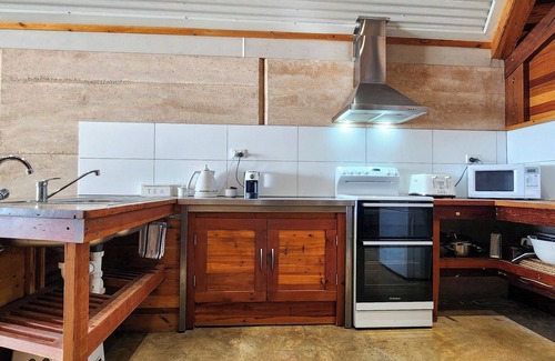 The eco-friendly rammed earth, split-level, modern 2 bedroom, 2 bathroom property is beautifully appointed.