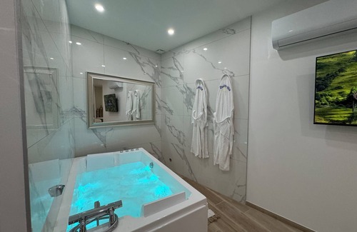 Dolce Vita, apparently luxurious with balneotherapy is located in Mornant. Dolce Vita, apparently luxurious with balneotherapy provides accommodation, featuring Fireplace/Heating, Hot Tub, Air Conditioner, among other amenities. This Apartment features Fireplace/Heating, Hot Tub, Air Conditioner, to make your stay a comfortable one.