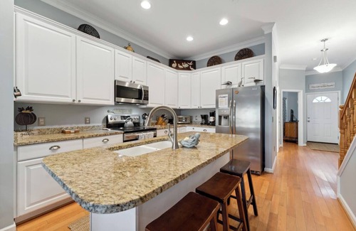 BEST VIEWS IN WATERS Edge on Folly Beach, SC. Beautiful water, dolphins, sunrise and sunset views from one of our large balconies or large windows over looking the Ashley River connecting to the Atlantic Ocean. Sit back, RELAX and breathe while at Havens Paradise. Let the sea breeze and amazing views take your cares away. Located in one of the most desirable locations on the island. Walk or bike to the beach, restaurants or shopping. Three bedrooms, 3 full baths with 4 beds. Sleeps 8! Kick back and relax at the 'Edge of America', Folly Beach, South Carolina. Our Townhome is located in one of the most desirable locations on Folly Beach. Waters Edge is a small community on the Folly River tucked away in a quiet cul-de-sac, yet a close walk to the beach or the restaurants and shops of downtown Folly Beach. Waters Edge has a community pool and dock for your enjoyment. Or hop in your car and be in beautiful, historic downtown Charleston in 15/20 minutes. Our charming 3 BR/3 BA townhome is 1700 square feet. The home is tastefully furnished with hardwood floors throughout and features a private 2 car plus garage. The kitchen is open with fully stocked appliances and has granite countertops. This kitchen has everything you will need to cook a full meal. The dining table seats 6, plus there are three bar stools at the granite island in the kitchen. Pots, pans, utensils, toaster as well as toaster oven, handmixer, blender, crockpot, etc. The living room is furnished with a large sectional sofa, chair large ottoman as well as a 47 inch widescreen smart TV Peacock is included and you can stream the xfinity app. (Samsung app included as well)any streaming you may have you can log into, as well as a wide variety of DVDs, wireless internet and sound system. Just off the living room is a screened porch with plush wicker furniture for relaxing and enjoying the views of the river. The three bedrooms are all beautifully furnished with new linens and each bedroom has its own bathroom. The master bedroom features a king sized traditional Charleston Rice four poster bed . The master bathroom has a Jacuzzi tub, standup shower and double sinks. There is also a 12 foot walk-in closet. Open the sliding doors off the master bedroom and walk onto a beautiful large balcony for a gorgeous view of the river and the marsh. This is the perfect place for quiet afternoons reading in the sun. The 2nd Bedroom features a queen bed, a twin bed and private bath. The third bedroom on the main level has a queen bed and full bath. We have an inflatable full size mattresses, ideal for the kids. We also have a pack n play. All bed rooms have TVs with ROKU or Google to stream your favorite service and DVD players. Folly Beach is a unique, small, eclectic beach town that features six miles of beautiful sandy beaches, excellent local restaurants, beach bars, and shops. The wonderful Folly Pier is 24 feet wide and extends more than 1,045 feet into the Atlantic Ocean. Go to the beach, enjoy the pier, relax at the pool, take a bike ride, hike out to Lighthouse Point, fish and crab off the dock or just enjoy fabulous sunset views from the dock under the covered gazebo from the bench swing. This home is perfect for families or groups of vacationers. The home is equipped with several amenities available to all guests including: board games, books, Bocce Ball, beach chairs, beach cruiser bikes, Kayaks, and more. Keywords: Dock, Beach, River, Lighthouse, Folly Beach, Upscale, Luxurious, View, Walking, Restaurants, Dolphins, Boat Landing The entire townhouse is available to you and your family. It is equipped with smoke detectors and carbon monoxide detectors. There are security cameras in the garage for security purposes only. The house is also equipped with a noise monitoring system. You will have the use of garage and house. You will have 2 spots in garage to park and must park in garage or on the street outside of the neighborhood, a quick 2 minute walk. I do have someone local available if an emergency arises. Self check in. Water's Edge Beach short walk Restaurants are a very short walk Shops short walk Large grocery stores within 5 minutes driving car 5 bicycles are available FOC 3 kayaks available GOLF CART PICTURED NOT AVAILABLE however there are rentals available on the island. Information provided at your request. Most everything is literally within walking distance, so during high season no need to pay for parking or search for parking spaces! Downtown Charleston is a short drive and James Island is right over the bridge. JI has tons of big grocery stores, WalMart, lots of restaurants and fast food. fishing poles, beach chairs, bicycles and kayaks available for use at no extra charge! Beach towels, toys and chairs are in garage for your use as well. **Use at your own risk** NO PARTIES, NO SMOKING,NO VAPING There are noiseaware sensors in home, per City of Folly Beach noise ordinance quite hours 10pm-8am
