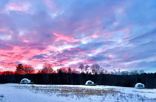 Our geodesic domes sit in on 10 acres of our property . In total come spring farm is 28 acres , you will have access to round pond to kayak , fish or swim. You may also visit the Alpacas , bunnies , pigs , sheep and our new lounge area opening June . The bathroom facilities are private for each dome, no sharing .You will need to walk to bathhouse . Pocket WiFi can be provided if requested . Follow us on IG at Comespringfarm .