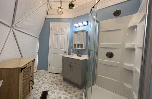 Welcome to our Romantic Dome. Very Unique with a real Nature feeling . Enjoy a nice relaxing bath in the claw foot tube while watching the sun set. Enjoy a nice fire out by the fire pit while looking at the stars. This Dome is not pet Friendly , due to the Material of the walls.
