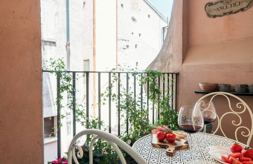 The Domus Quiritum Elite, consisting of a double bedroom, a large living room with balcony and double sofa bed, a kitchen and a bathroom, with old terracotta floors and exposed wooden beams, is located on the second floor of a historic building of the 800 (with elevator) in the heart of Rome. The large living room, with antique furniture, a large (non-working) fireplace, original paintings and many books will allow you to breathe an atmosphere of times gone by! The bedroom features a bed with hypoallergenic, ergonomic and breathable memory foam mattress and pillows. A washing machine completes the equipment of this apartment. The whole apartment is equipped with Air Conditioning and Wi-Fi connection. You will also have bed linen and towels, a hair dryer and an iron. Biscuits, fruit, fruit juices and honey at km0 of the Roman countryside will always be available for breakfast or for afternoon tea. The Domus Quiritum Elite is located in the heart of Rome, in the Campo dei Fiori district in the characteristic Regola district. The name derives from Renula, that is from that soft sand ("thin sand") that still today the Tiber river deposits during the floods. The district was in fact subject to the floods of the Tiber.