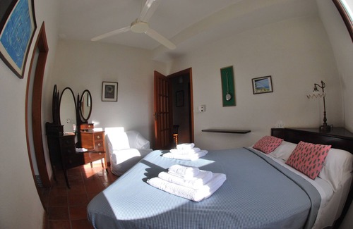 This is a house in front of the sea, on two floors, with a garden all around, a well-equipped kitchen washing machine, oven, fridge, washing machine, three bathrooms (one on the first floor, two the second), three bedrooms, one with private bathroom, dining room and lounge downstairs and large terrace in front of the sea upstairs.