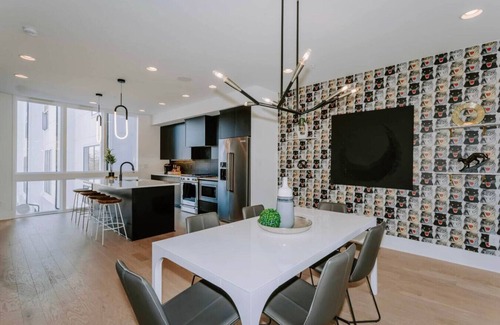 This double-stacked Nashville escape is made for big moments and even bigger groups. With two bold, modern townhomes side by side—each featuring 4 bedrooms, 4.5 baths, custom murals, rooftop patios, and hot tubs—you’ll have space for up to 24 guests to stretch out, celebrate, and soak up the rhythm of Music City.