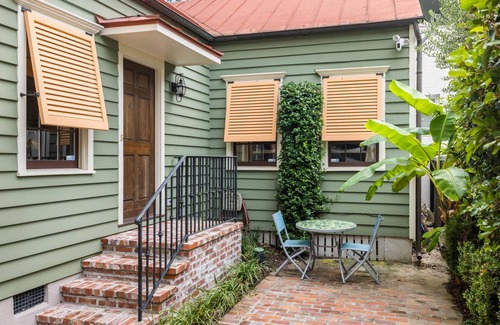 Historic Charleston Cottage just 1 block from the heart of King and Market Street. Our 1000sf two bedroom/two bath home has recently been renovated and furnished to include all new high-end bedding and furniture. The home is situated in Harleston Village, one of the most desired neighborhoods in Downtown Charleston. Located on a quiet side street, the home has privacy but is only blocks from all that the lower peninsula has to offer. The best shopping and restaurants of Lower King Street are just a few minutes walk from the home or hop on a bike and see all of the most popular downtown sights such as the Battery, Rainbow Row, and Waterfront Park which are all less than a mile from your front door.Enter our home into the living room and you will immediately notice quality furniture including a premium sofa couch with upgraded queen sleeper and 50” smart TV. Our updated kitchen has every appliance and cooking item you may need and dining for six. Primary bedroom has a new queen hybrid mattress, large double closet, ceiling fan, 32” smart TV, and the en-suite bathroom has a bathtub/shower combo. Second bedroom has a queen hybrid mattress, two large closets, ceiling fan, and a new trundle bed with 2 twin beds if needed for additional guests. Hallway bath is upgraded with atile shower. We have all new plush bed linens and towels as well as full-size washer and dryer. Enjoy your morning or evening beverage on our bistro set out on the private brick patio. Home is also child friendly with high-chair, and pack n play for your convenience. Driveway will fit either two small or one larger vehicle. In an effort to provide luxury accommodations we have complimentary soap, shampoo, laundry detergent, on-demand tankless water heater (no wait un-limitless hot water) and high-speed WiFi, during your stay.