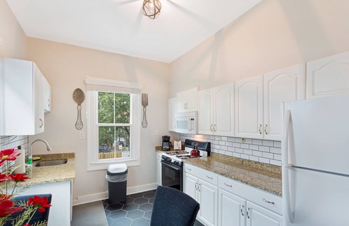 This conveniently located two bedroom, one bath recently renovated flat is conveniently located three blocks from Forsyth Park, walking distance to downtown attractions, and easy access to I-16. Parade routes and race routes are as close as 1-4 blocks depending on the event. This apartment has a large primary bedroom with sitting area, living room with plenty of seating, and a kitchen with plenty of space for cooking. You can rest and relax or go a few blocks to be a part of the action offered in historic downtown Savannah.